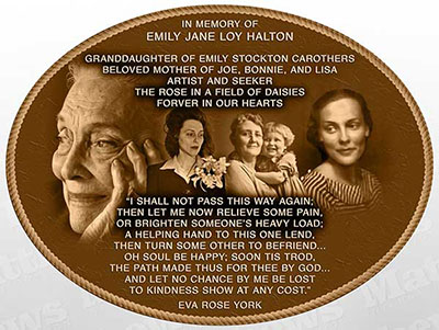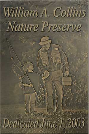 ![]() 10"x13" image casting bronze plaque with raised letters. Single line border and images. Hidden stud mounting |